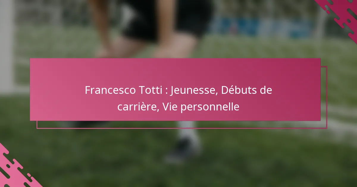 Francesco Totti, né à Rome, a émergé d’un environnement propice qui a alimenté sa passion pour le football dès son jeune âge. Sa carrière a décollé lorsqu’il a rejoint des clubs de jeunes locaux, faisant finalement ses débuts avec l’AS Roma, où il est devenu un joueur célébré. Au-delà du terrain, la vie personnelle de Totti met en avant ses liens familiaux forts et ses efforts philanthropiques, peignant le portrait d’un individu aux multiples facettes. Key sections in the article:…