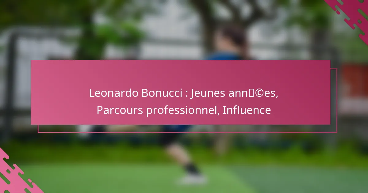 Le parcours de Leonardo Bonucci dans le football a commencé dès son jeune âge, où une forte influence familiale et une passion pour le sport ont jeté les bases de son avenir. Au fur et à mesure qu’il progressait dans sa carrière professionnelle, Bonucci est devenu connu pour ses réalisations significatives et son style de jeu en évolution, s’établissant comme une figure clé tant dans le football de club qu’international. Son leadership et sa conscience tactique ont non seulement façonné…