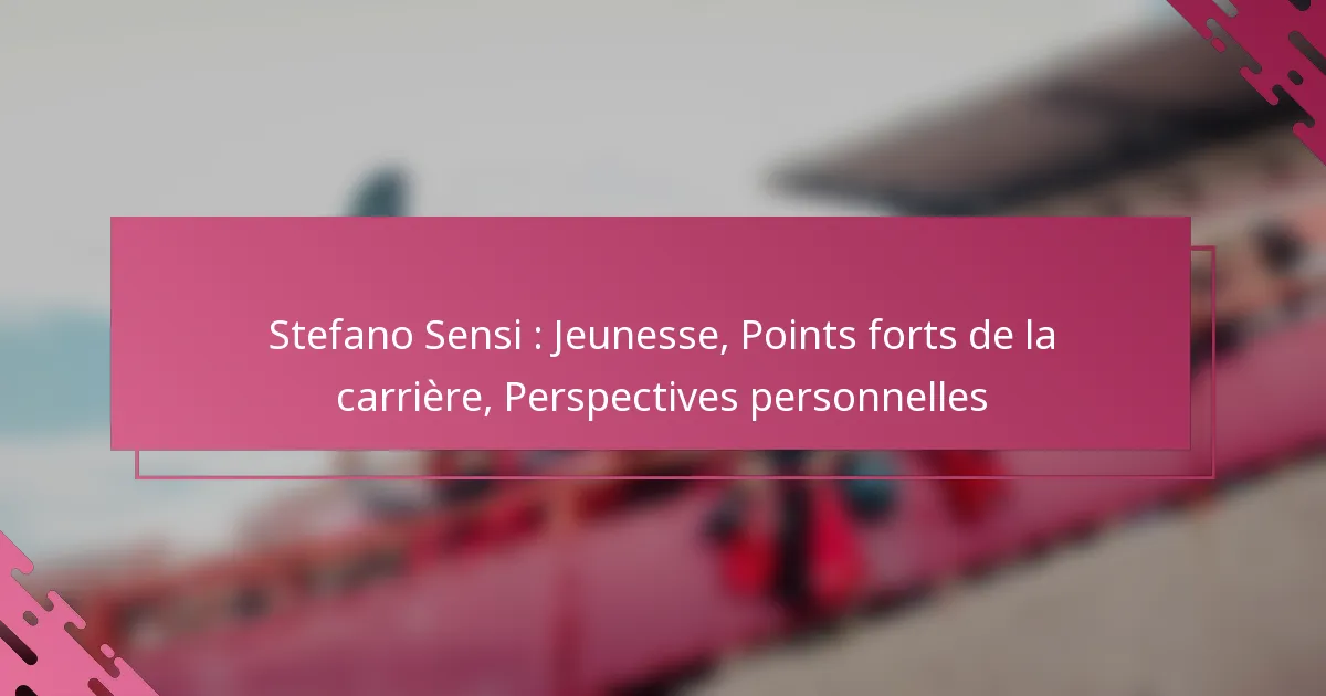 Stefano Sensi : Jeunesse, Points forts de la carrière, Perspectives personnelles