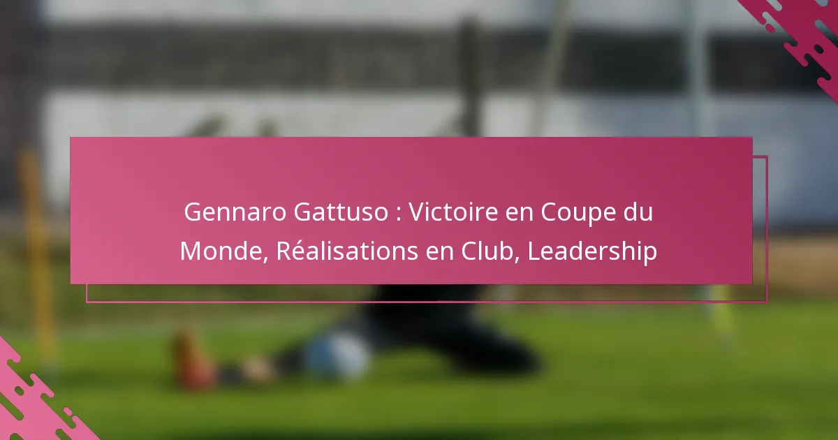 Gennaro Gattuso est célébré pour sa carrière marquante en tant que joueur et entraîneur, jalonnée d’accomplissements significatifs tant au niveau des clubs qu’international. Il a joué un rôle crucial dans la victoire de l’Italie lors de la Coupe du Monde 2006 et est renommé pour ses contributions à l’AC Milan, où son leadership et sa ténacité ont laissé un héritage durable dans le football. Key sections in the article: Toggle Quels sont les jalons clés de la carrière de Gennaro…
